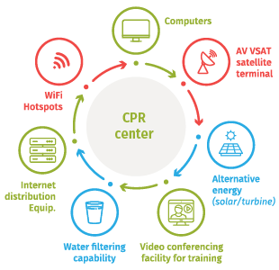 All CPR members will be connected to a designated area with the capacity to receive and transmit crucial information for recovery efforts in case of an emergency. In order to insure this capacity, each member of the CPR network will constitute a Center for Preparedness and Response equipped with: